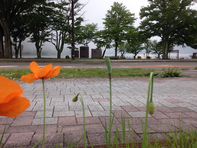 離開足浴,我往湯元溫泉車站走來,但離發車時間還有15分鐘。腳痛雖在足浴中舒緩許多 但我還有一個星期的旅程, 我不想因為腳痛不能盡興。心裡贪心:我逛逛附近的林子裡就好。但不知為何這一排水泥色的亭子讓我畏懼。。 我犹豫了下 但最後,我還是走進去了。。好像 早就被安排好了的行程。